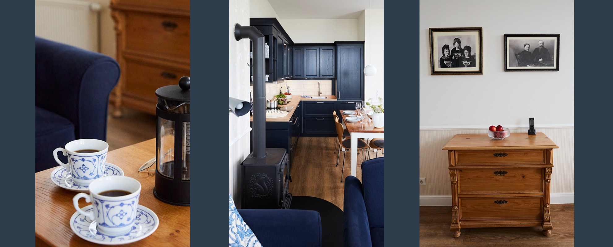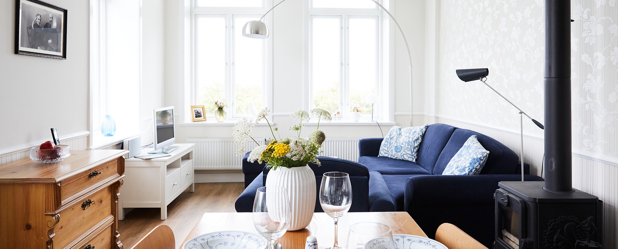 Die Wohnung Prinz Alfred befindet sich im Erdgeschoß der Villa Helgoland und bietet auf 45 Quadratmetern Platz für 2 Personen. Kinder sind bei uns willkommen, nähere Informationen finden Sie unter „Für unsere kleinen Gäste“. Vom Wohnzimmer aus können Sie den Blick auf das Wattenmeer und den Seezeichenhafen genießen.